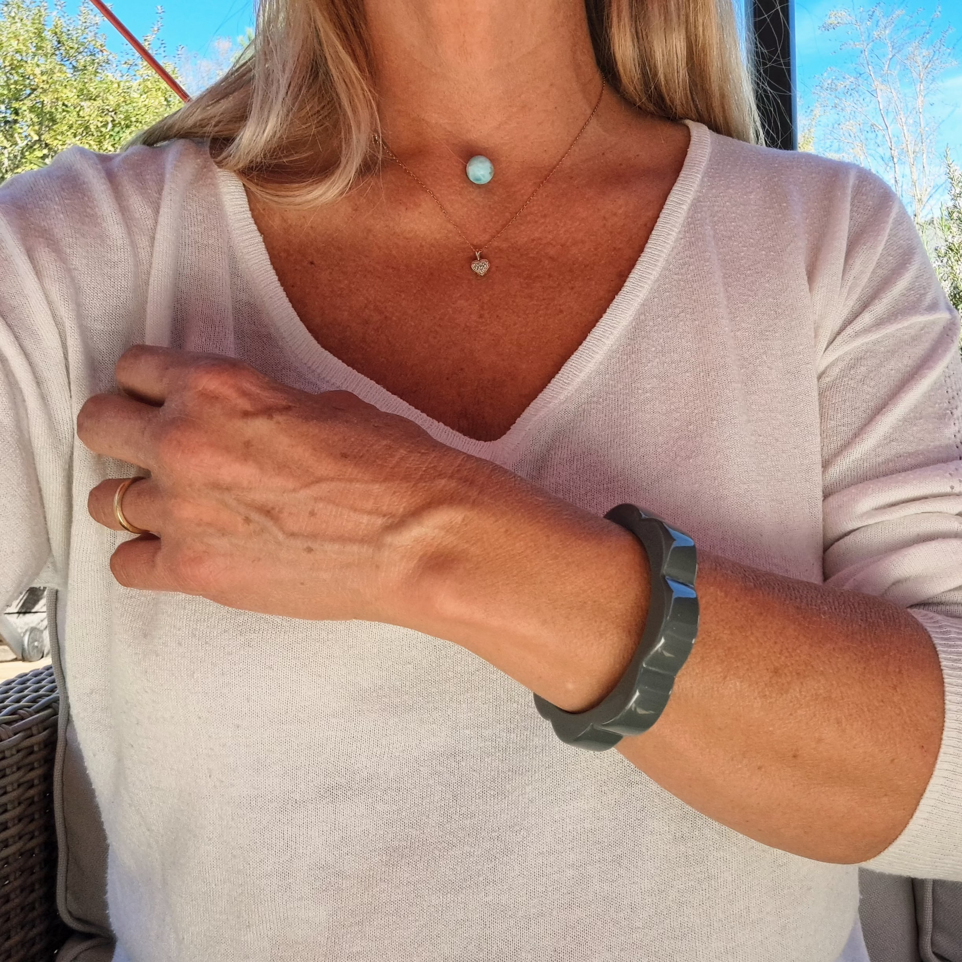 Bracelet Jonc Fleur Gris Anthracite Années 1960-70