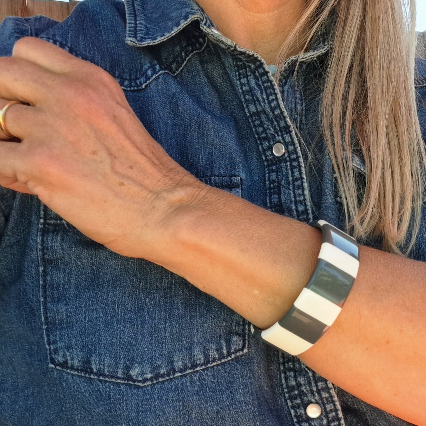 Bracelet Jonc Gris & Blanc Contrasté Élégance Graphique