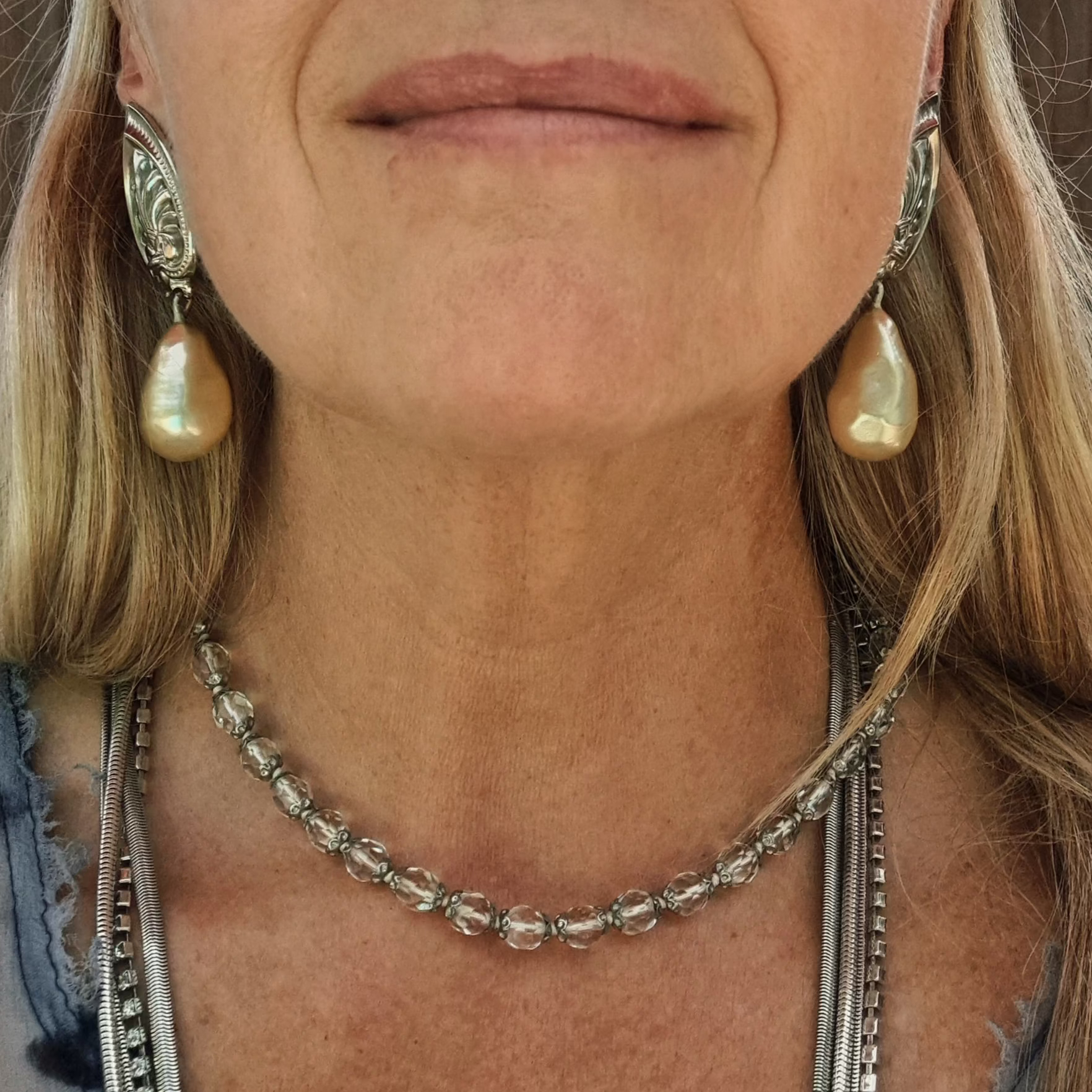 Ras-de-Cou à Perles de Verre Facettées et Fermoir Argenté
