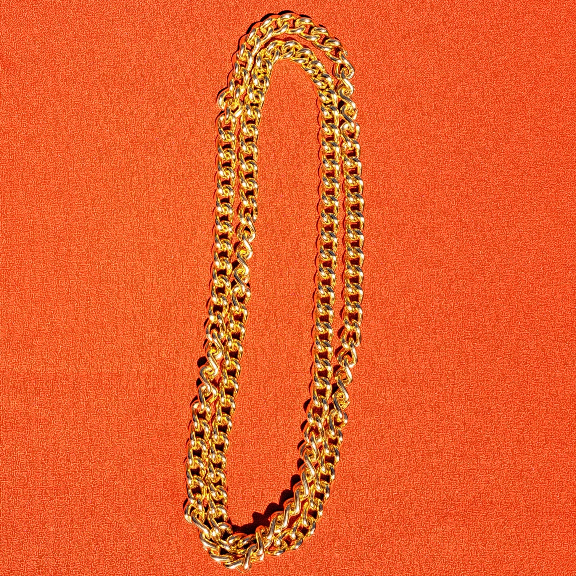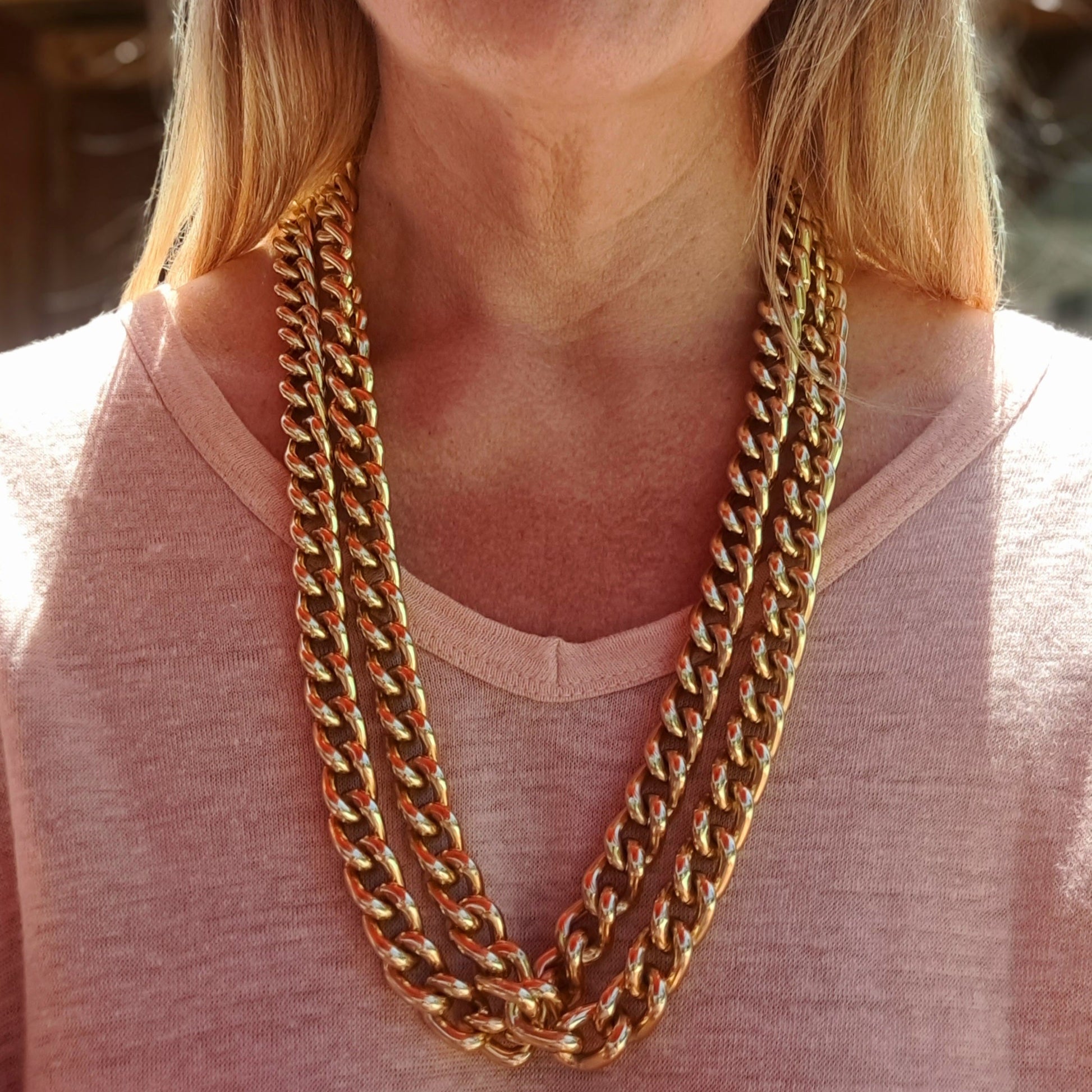 Cette chaîne dorée est une pièce d'exception, véritablement pensée pour être la pièce maîtresse de votre style. Avec ses 200 grammes et sa longueur généreuse de 71 cm (pliée), elle offre un tombé parfait et une présence remarquable. Son design continu, sans fermoir, assure une fluidité élégante. Facile à enfiler, vous pourrez la porter seule en sautoir simple, la doubler pour un effet collier double rang, ou même la superposer avec d'autres colliers plus fins.