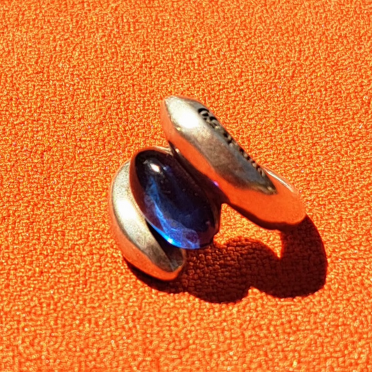 Bague Dôme Bleu Clair en Argent Massif avec Cabochon